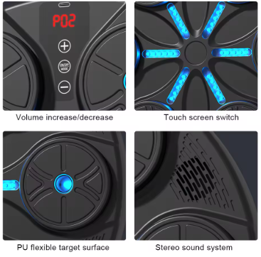 • Intensidad de entrenamiento personalizable: Adapte su rutina de ejercicios con la máquina de boxeo musical, que presenta resistencia al punzonado ajustable.Sus módulos duraderos están diseñados para soportar golpes fuertes, lo que le permite establecer la velocidad de golpe deseada para una experiencia de boxeo personalizada y efectiva.